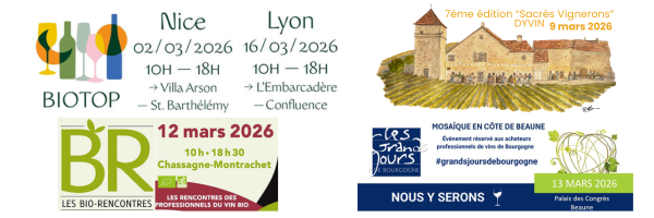 – Millésime Bio in Montpellier, Parc des Expositions, 26 to 28 January 2026 (Hall B1 n°199)